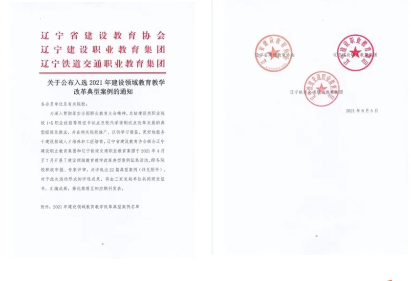 为深入贯彻落实全国职业教育大会精神,总结凝练职教集团内职业院校教育教学改革方面的优秀做法和典型经验,进一步推进教学模式改革,促进课堂教学效果和人才培养质量不断提升,辽宁建设职业教育集团与辽宁省建设教育协会、辽宁铁道交通职业教育集团开展建设领域教育教学改革典型案例征集活动。本次活动共收集辽宁交通高等专科学校、辽宁铁道职业技术学院、KY开元集团官网入口、辽宁建筑职业学院等11所院校,40余篇教学改革案例,并最终遴选出“对接智能建造新发展,构建高职书证融通新机制”等22篇教学改革案例为优秀典型案例。目前,《辽宁高职学报》在特别策划栏目对部分集团教育教学改革优秀典型案例进行刊发,为建设领域相关院校发展提供借鉴。