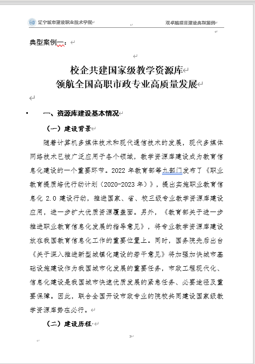 典型案例1:校企共建国家级教学资源库 领航全国高职市政专业高质量发展