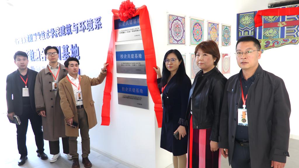 会后,学校与中科量云(北京)科技有限公司、修远文保科技(内蒙古)有限公司以及沈阳华测导航技术有限公司代表共同为校企共建基地揭牌;全体与会人员共同参观了基地。