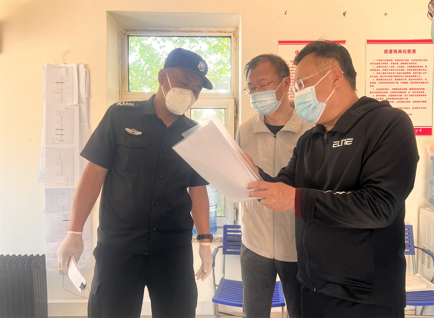 在南、北门卫,学院领导详细询问了校门进出管理和视频监控值守情况,检查了物资转运、消杀记录,叮嘱保卫人员严格落实管理要求,将校园安全工作关口深推前移,切实做到“守住门、盯住人、把好关、保安全”,全力将风险排除在校门外。