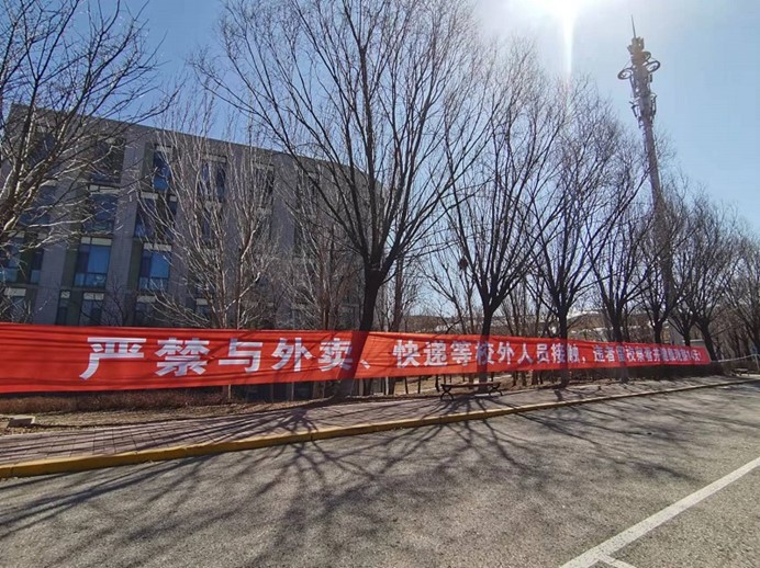 严查细管,全面做好校门管控。在校门外摆放拒马护栏,设置缓冲区,外来人员一律禁入,校内人员如有极特殊情况出校需持学院主要领导签字的教职工离校审批单方可通行。在校门外设消毒转运处,外来后勤保障物资及防疫物资等严格执行转运程序,经全面消杀后再由专人转运至校内。
