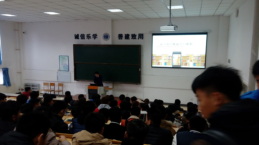 图书馆于2016年11月21日、22日在阶梯教室联合万方、知网等等电子资源数据提供商举办了"电子资源使用"讲座,为众多的同学、读者讲解了电子资源发展历史,普及了电子资源使用方法。各系同学踊跃参加并积极与讲师互动。活动结束后同学们纷纷表示通过此次活动使得自己明白了电子资源的使用方法,提高了利用电子资源的兴趣。