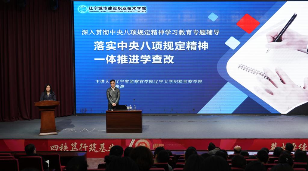 4月24日,学校举办深入贯彻中央八项规定精神学习教育第2期读书班,邀请辽宁省监察官学院副院长张波作专题辅导,学校领导班子成员、全体中层干部和党员参加培训。会议由纪委书记王艳东主持。