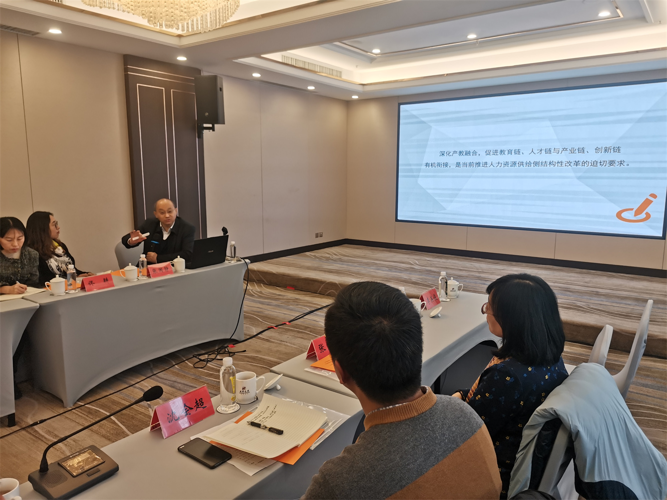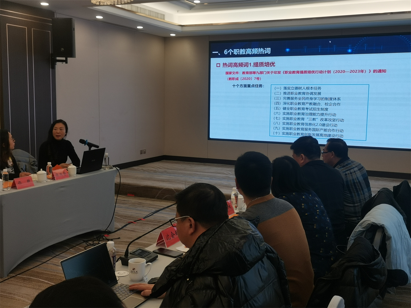 辽宁教育研究院副院长高鸿做题为《关于高水平专业群建设的若干思考》专家讲座,详细的介绍了如何将人才链、产业链、创新链有机的衔接起来组建高水平专业群,以及职业院校应如何围绕专业群建设调整专业布局,从课程体系、教育模式、师资团队建设、专业管理等方面更好的开展高水专业群建设。