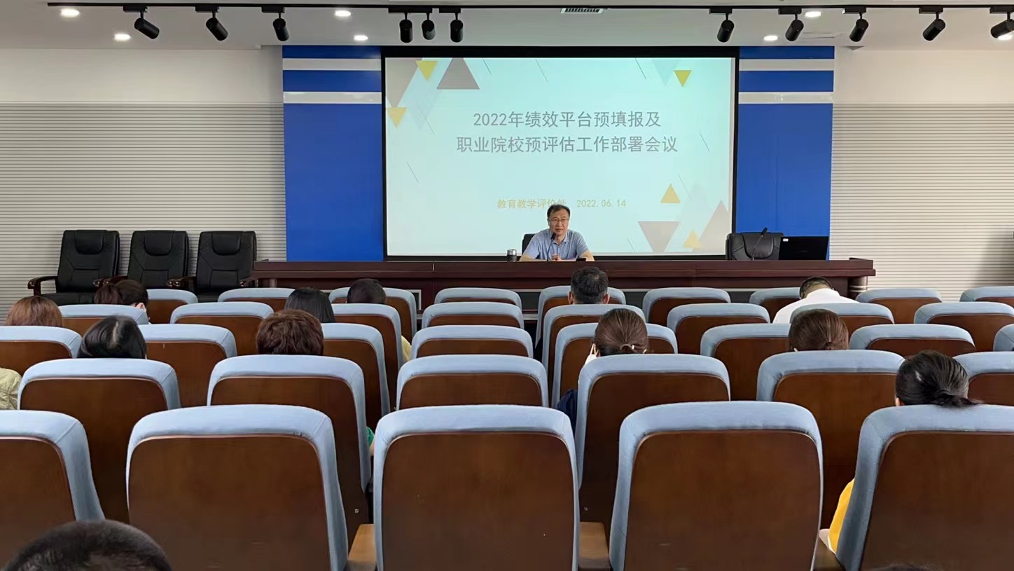 6月14日下午,我院召开2022年高校绩效管理考核数据预填报及职业院校预评估工作部署会议。院长王斌出席会议,会议由教育教学评价处处长徐艳主持。