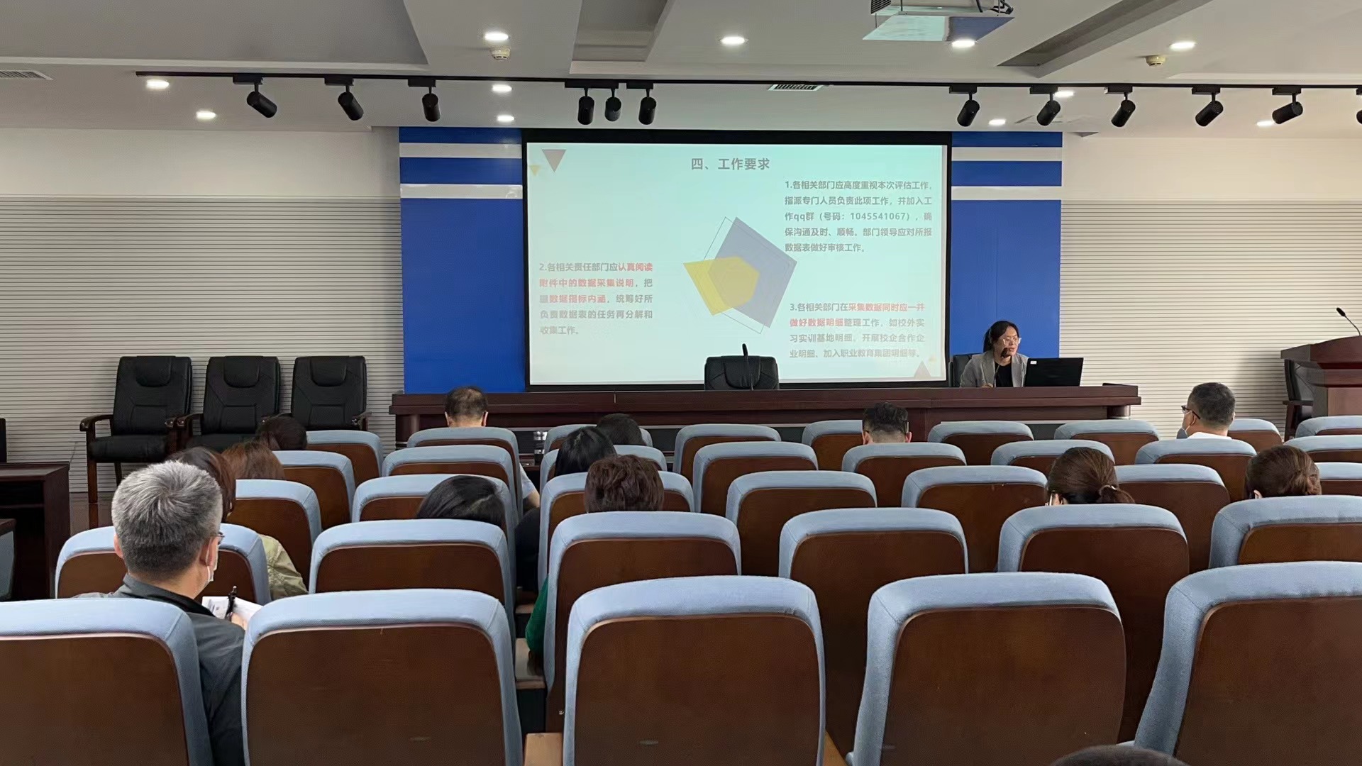王斌就此次省绩效管理考核数据预填报工作及职业院校预评估工作提出了具体要求:一是要求各部门提高认识,高度重视,对标对表,做好绩效平台数据预填报及职业院校预评估工作;二是要求各部门通力合作,统筹安排,确保及时高效、高质量地完成绩效管理考核工作;三是要求各部门将这两项工作当作对学院管理水平的检验,努力工作、认真工作、钻研工作,保证省绩效管理考核数据预填报及职业院校预评估工作顺利完成。
