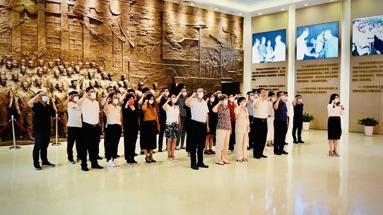 参观结束后,全体党员干部面向党旗再次庄严宣誓,铿锵恢宏的誓词,强烈震撼着在场的每一位党员干部,一字一句,神圣而豪迈,铮铮誓言、拳拳初心,体现了党员干部对中国共产党的无限忠诚。