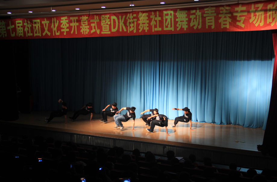 在开幕式上由社联学生代表宣读了本届文化季总方案,对本届社团文化季活动进行详细介绍,并诚挚邀请同学们加入到丰富多彩的社团活动中来。开幕式结束后由DK街舞社团带来社团专场演出,音乐社团、健美操社团、创意剧社受邀在晚会上以乐器演奏、啦啦操表演、相声、小品等形式为大家带来了一场精彩绝伦的表演,同学们通过精彩的开幕式晚会展现了自己的青春和才艺,体现了社团的活力。