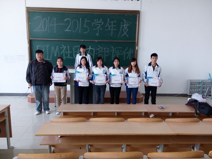3月25日中午12时30分BIM社团评优活动在阶梯402室拉开序幕,本次评优中出席的主要人员有建筑工程系主任刘鑫主任、建筑工程系王鑫老师及建筑与环境系王施施老师。各位老师以及社员在愉悦的气氛中进行了对社内优秀社员的颁奖仪式。在颁奖仪式之后社团指导教师王鑫老师对上学期的社员表现给予了一定的点评,同时也希望未获奖的同学再接再厉。并且在本次评优活动的最后阶段,刘鑫主任对对BIM社团的前景做出了规划,同时也向社团干部及社员提出了几点要求与期望。