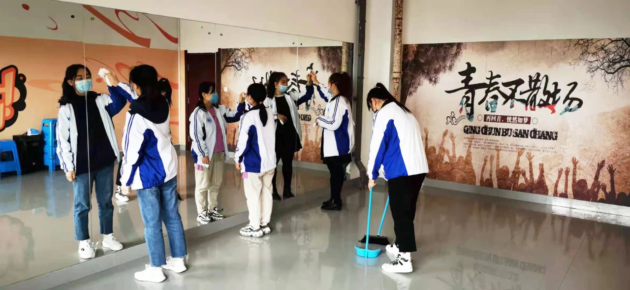 干净的校园、优美的环境是每一位同学都向往的,志愿者们积极参加本次活动,用自己的周末休息时间,清扫了文体馆和图书馆。