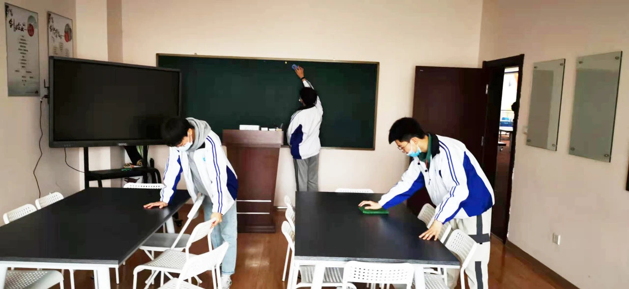 每间活动室都有志愿者忙碌的身影,不遗余力的打扫边边角角的灰尘,将桌椅摆放整齐并擦拭干净,图书馆的书被重新摆放整齐,顶棚的灰尘也被志愿者打扫着……