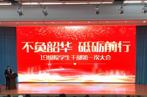 11月5日,我院召开“不负韶华、砥砺前行”主题学生干部大会。大会由学生会主席孙松主持,团委老师及18、19级学生干部共同参加。