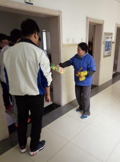 在雷锋活动月里,学生志愿者们与保洁阿姨们一起进行了日常的清扫,并为校内保洁阿姨们送去了护手霜、塑胶手套等小物品,感谢校园保洁阿姨每日的辛苦付出,
