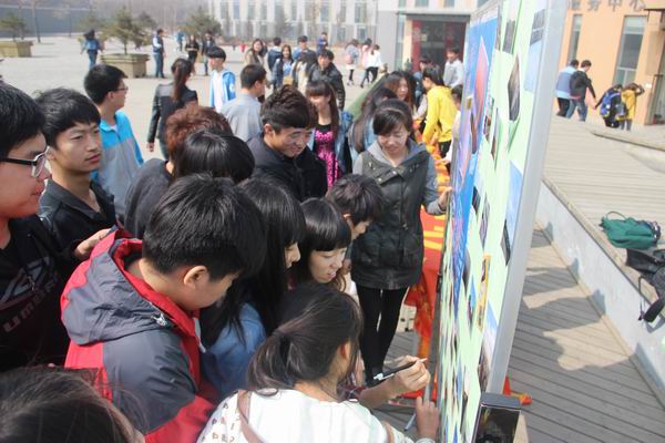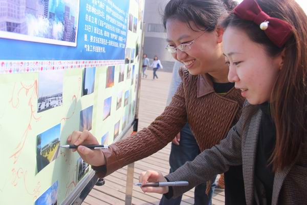 本次活动通过“城建天气,我们的记忆”主题条幅签名和“城建天气”主题照片评选两个环节向全院师生宣传环保知识。全院师生踊跃参与投票,最后评选出“隐匿在雾霾中的城建”、“夕阳红满天的城建”、“假日空寂的城建”、“皑皑白雪上印着青春印记的城建”等优秀作品32个,每一张照片都记载了城建学子的深深记忆。活动中志愿者们向参加评审的教师、同学们赠送了一次性环保口罩和小盆栽。