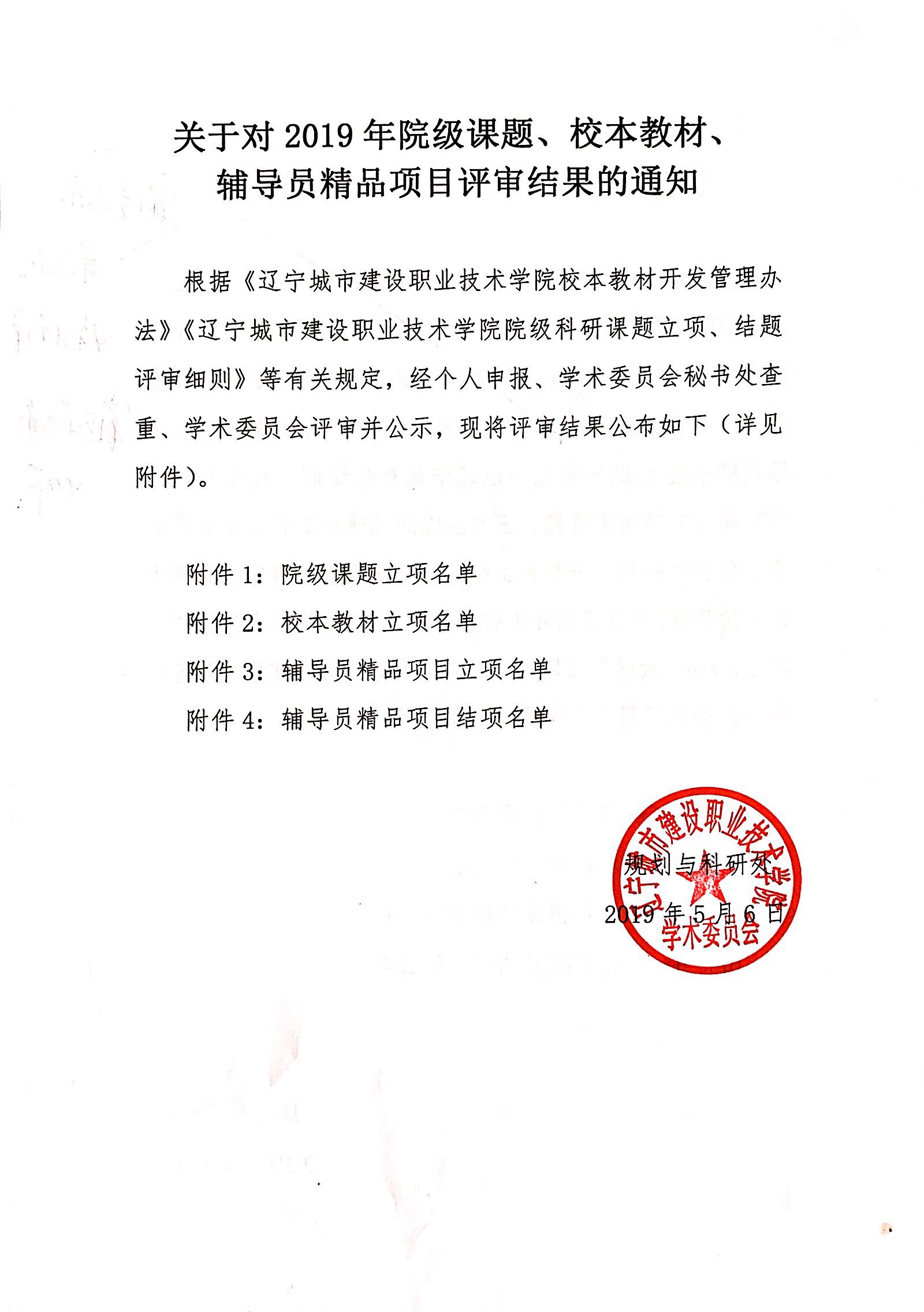 下一条:关于2019年院级课题、校本教材、辅导员精品项目立项评审结果的公示