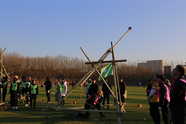 针对心理委员的“工匠精神”入手培养学生的敬业、精益、专注、创新,11月24日,我们将“罗马炮架”项目作为培训的第一课,在寒风凛冽的下午45个心理委员分为3组,根据图纸,利用绳结技术制造出属于自己团队的战车,通过稳定性、投射距离、投射准确性三个方面对三架战车进行了考验,这个项目更好的让心理委员体会到了要想完成一个工作必须要做到敬业、精益、专注、创新,巨大的压力下朋辈们提升了面对挑战及困难的信心和勇气,在计划、组织、协调中提升助人自助的工作能力。