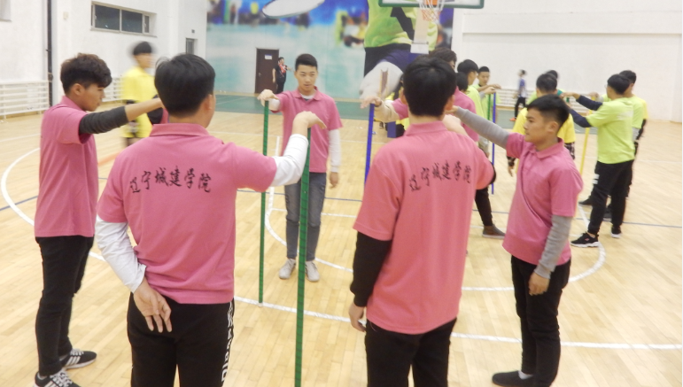 | 为了让我院学生拥积极向上的心态和良好的团队意识, 12月8日,筑砼朋辈心理协会在文体馆组织了拓展训练。活动的主要参与者为16级各班体育委员,共计38人,分为4组。 在朋辈教练的组织带领下,16级体委做了不倒森林,无敌风火轮,鼓舞飞扬,坐地起身,心心相印五项活动,在鼓舞飞扬和坐地起身的活动中,虽然在活动中遇到了一些困难,但同学们没有放弃,精诚合作,团结一致最终4个小组都完成了所有的项目,同学们在做活动的过程中表现出了极高的热情。 通过此次拓展训练,同学们知道了团队这两个字的意义,懂得了团队合作,齐心协力的重要性,坚持就会成功。