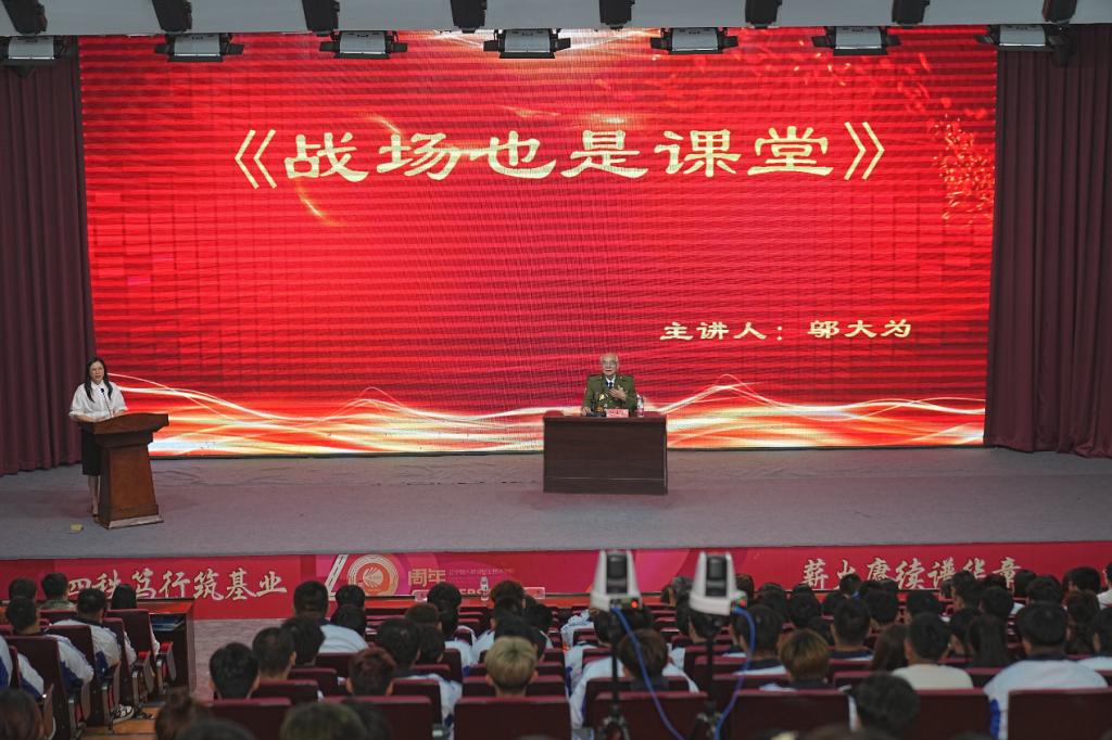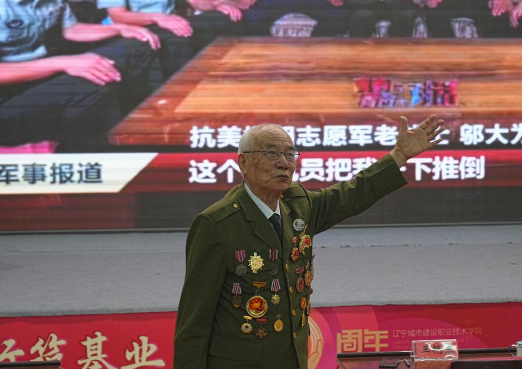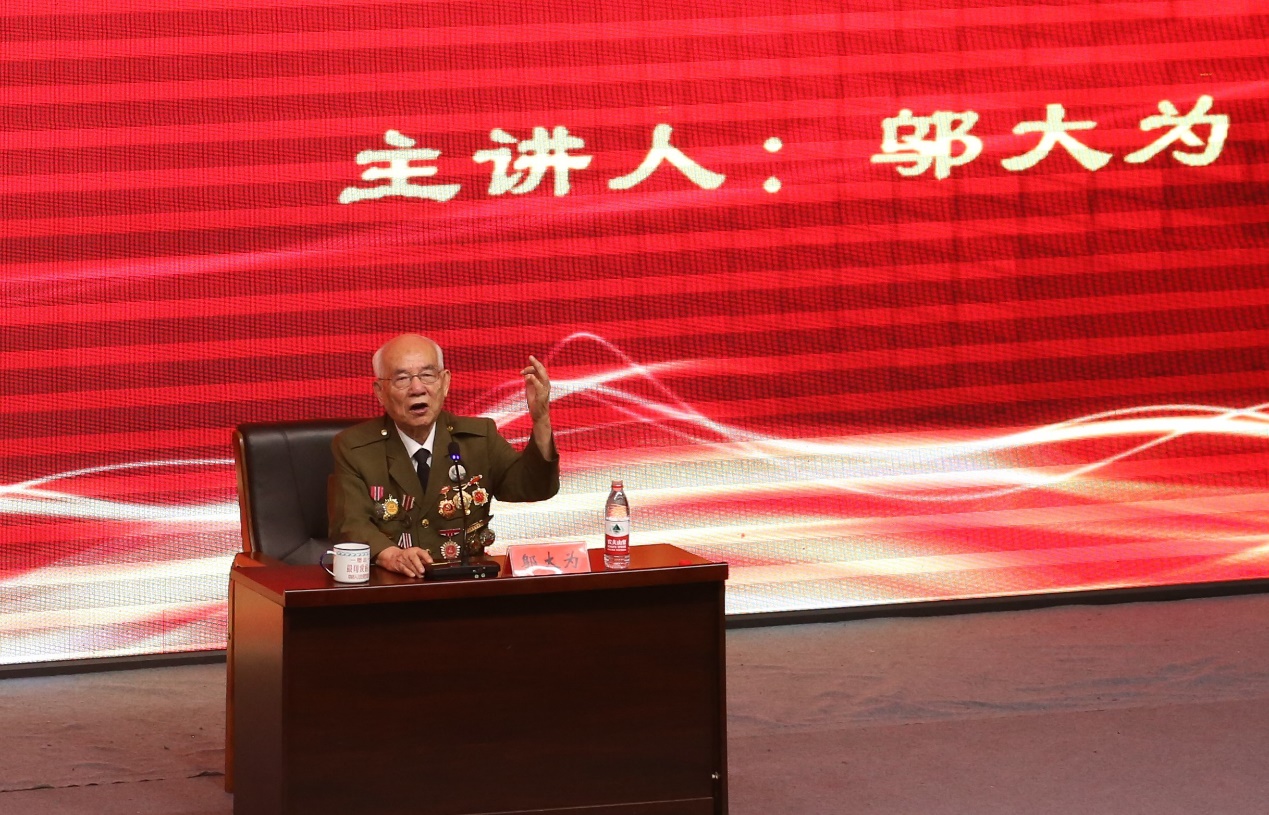 之后,邬老将军为全体师生作专题报告。他通过讲述亲历的抗美援朝,让师生们重温了那段史诗般的红色记忆。冰雕连、黄继光、邱少云、董存瑞、上甘岭……一个个光辉形象、一场场惨烈的战斗在老将军的讲述中生动浮现,动情处老将军几度哽咽,在场的师生无不动容。老将军说,中华民族在一穷二白、百废待兴的艰难时期,一批批青年人在祖国的召唤下走向战场,他们不畏强权霸权、不惧牺牲,敢于斗争,勇于胜利,用鲜血和生命换来了中国70多年的和平,希望广大师生传承红色基因、继承革命遗志,弘扬抗美援朝精神,为实现中华民族伟大复兴的中国梦奋勇前行。