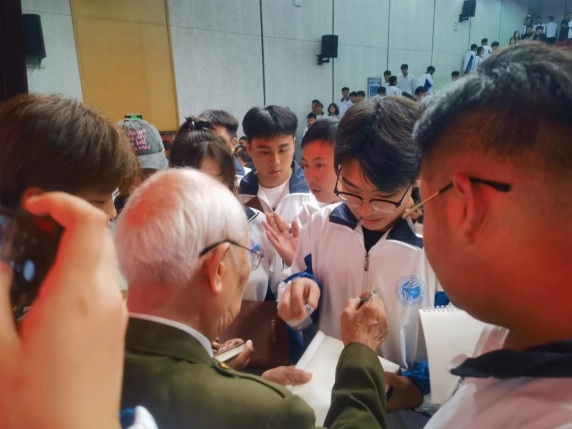 报告会在全场师生共同唱响老将军作词的校歌《自豪吧!未来的城市建设者》中结束。从报告厅到中央大道再到图书馆,热情的学生们一路追随老将军签字、合影,同学们说,这才是我们真正要追的明星!